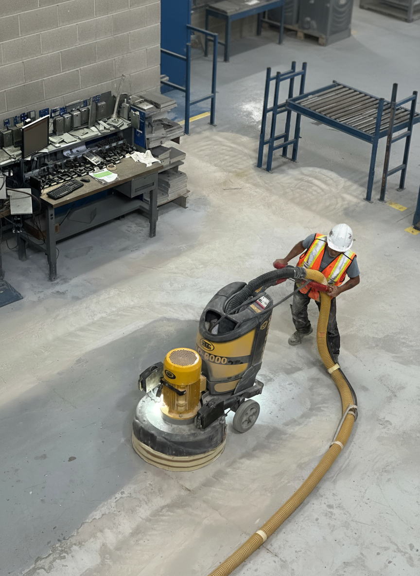Concrete preparation is the foundation of every successful epoxy and polyurethane flooring system. Our process includes shotblasting, grinding, crack and joint repair, detailed drain and doorway preparation, vacuuming, sealing, and priming where required to ensure proper adhesion, long-term performance, and compliance with manufacturer specifications.